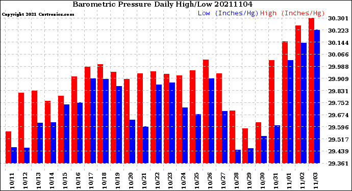 Milwaukee Weather -- 20211104 Barometric Pressure