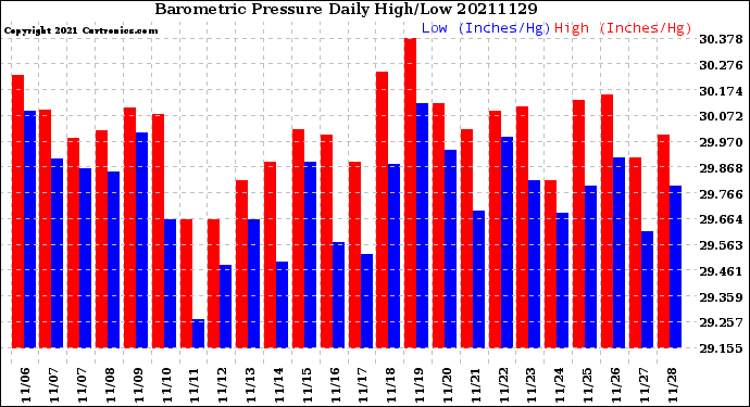 Milwaukee Weather -- 20211129 Barometric Pressure