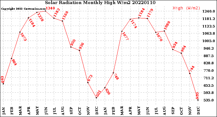 Monthly High W/m2 -- From curtronics.com by Curt Blank