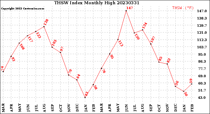 Milwaukee Weather -- 20230331 THSW Index