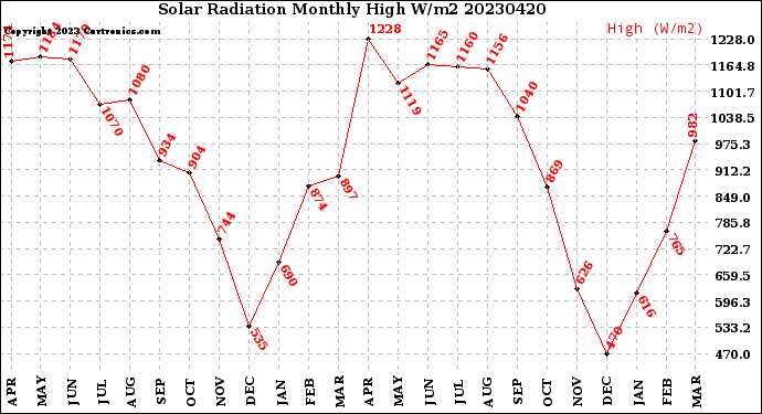 Monthly High W/m2 -- From curtronics.com by Curt Blank
