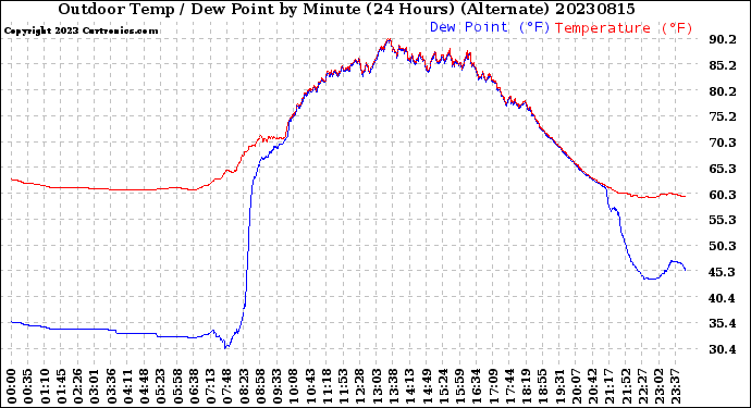 Milwaukee Weather -- 20230815 Outdoor Temp / Dew Point