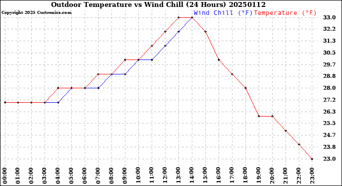 Milwaukee Weather -- 20250112 Outdoor Temperature