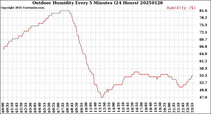 Milwaukee Weather -- 20250128 Outdoor Humidity