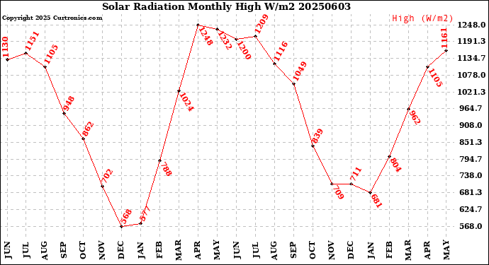 Monthly High W/m2 -- From curtronics.com by Curt Blank